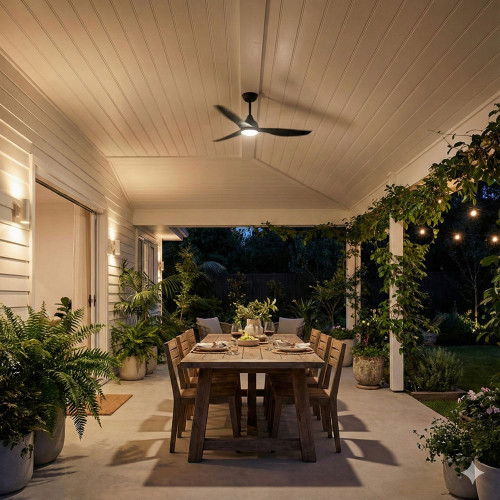 This ceiling fan combines aerodynamic precision with advanced DC motor technology to deliver efficient, quiet and highly controlled airflow performance. Constructed with ABS blades, a steel body and canopy, and a PMMA lens cover, it is engineered for long-term reliability while maintaining a refined, slimline aesthetic suited to contemporary interiors. Presented in a matt black finish, its 1220mm (48 inch) blade span paired with a 10° blade pitch produces balanced and stable air movement, making it suitable for residential living rooms, bedrooms and covered outdoor areas where dependable year-round ventilation is required.