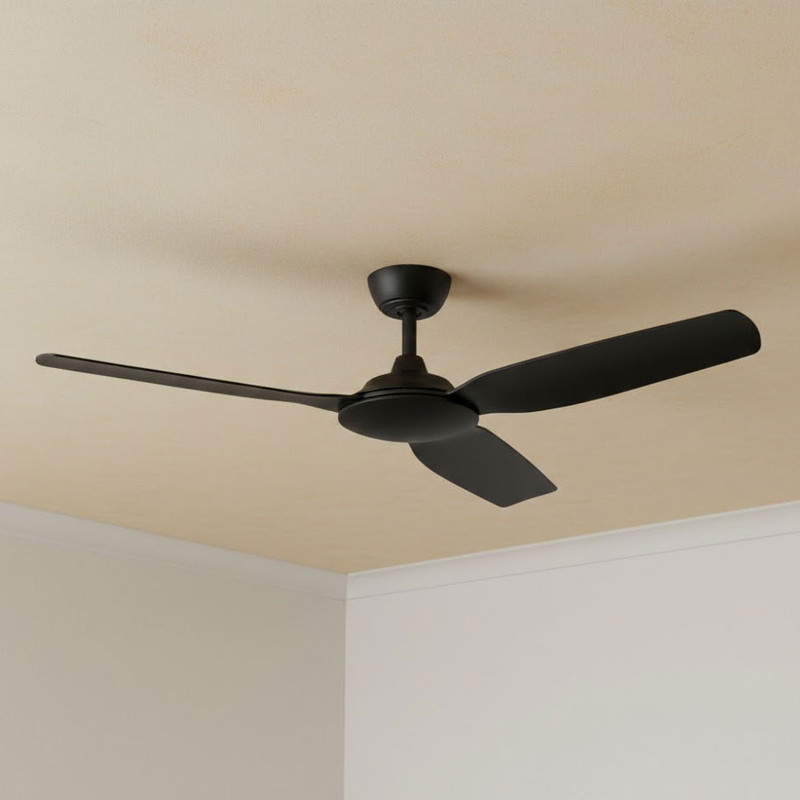This ceiling fan delivers a refined balance of aerodynamic efficiency, smart control functionality, and compact architectural form, engineered for reliable performance in modern residential and covered outdoor environments. Finished in matt black, the fan features a precisely balanced 3-blade configuration with a 1220mm (48 inch) blade span, driven by a high-efficiency 33W DC motor producing rotational speeds of up to 220 RPM. The optimised 14° blade pitch is calibrated to maximise volumetric air displacement while maintaining low acoustic output across all six speed settings.