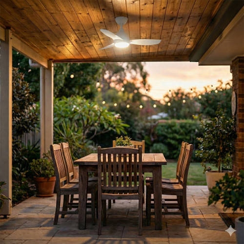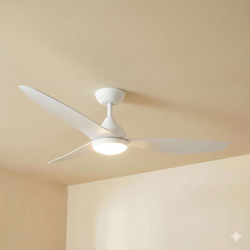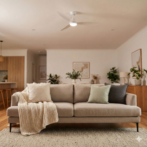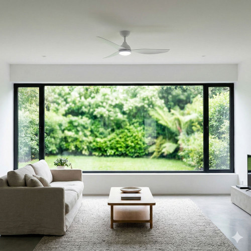 This ceiling fan combines aerodynamic precision with advanced DC motor technology to deliver efficient, quiet and highly controlled airflow performance. Constructed with ABS blades, a steel body and canopy, and a PMMA lens cover, it is engineered for long-term reliability while maintaining a refined, slimline aesthetic suited to contemporary interiors. Presented in a matt white finish, its 1220mm (48 inch) blade span paired with a 10° blade pitch produces balanced and stable air movement, making it suitable for residential living rooms, bedrooms and covered outdoor areas where dependable year-round ventilation is required.