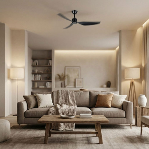 This ceiling fan delivers a refined balance of aerodynamic efficiency and architectural simplicity, engineered to provide stable airflow performance for modern residential environments. Finished in matt black, it incorporates three precision-moulded ABS blades driven by a quiet and energy-efficient 33W DC motor. The 1270mm blade span, combined with a calibrated 17° pitch, enables the fan to generate high-volume air movement while maintaining low mechanical resistance, ensuring smooth, consistent operation across all speed levels.