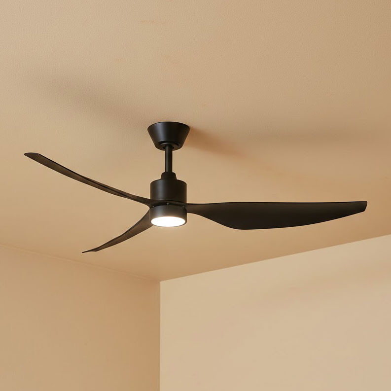 This ceiling fan combines advanced aerodynamic engineering with a refined contemporary profile, delivering efficient and consistent airflow for both residential and covered outdoor environments. Constructed with a durable steel body and canopy paired with high-performance ABS blades, it maintains structural rigidity while ensuring smooth, stable operation. Finished in matt black, the fan presents a sleek, modern aesthetic suitable for a wide range of architectural interiors. Its slimline proportions and 332mm overall height make it ideal for low-ceiling installations without compromising airflow performance or lighting capability.