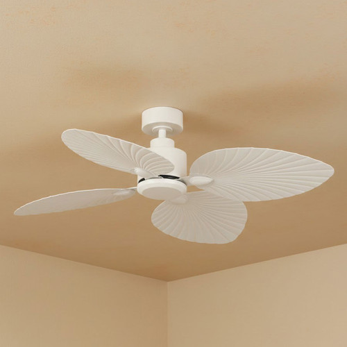 This smart DC ceiling fan is engineered as a high-efficiency air circulation solution for modern residential interiors and covered outdoor environments, finished in matt white with white wash blades, and constructed with a precision-balanced four-blade palm leaf aerodynamic profile across a 1265mm (50-inch) sweep diameter. The 12° blade pitch is optimised to generate stable airflow with reduced turbulence while maintaining consistent volumetric distribution across all six electronically controlled speed settings.