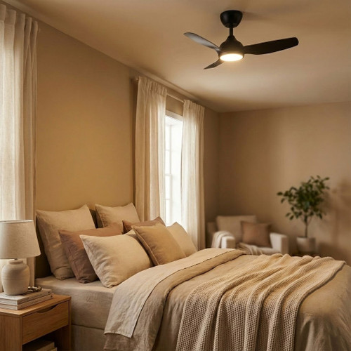 This ceiling fan integrates advanced DC motor engineering with a streamlined, contemporary form to deliver efficient airflow and consistent illumination for modern residential environments. Constructed from durable ABS for the body, canopy and blades, it achieves strong structural stability while maintaining resistance to humidity and environmental variations typical of indoor and covered outdoor settings. Its matt black finish enhances the architectural profile, while the integrated PMMA lens ensures optical clarity and uniform light transmission. With a 1320mm blade span and an 18° pitch, the aerodynamic design maximises air displacement while maintaining low-noise rotational characteristics.