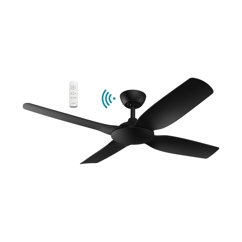 This ceiling fan delivers a refined balance of aerodynamic efficiency, smart control functionality, and compact architectural form, engineered for reliable performance in modern residential and covered outdoor environments. Finished in matt black, the fan features a precisely balanced 4-blade configuration with a 1320mm (52 inch) blade span, driven by a high-efficiency 36W DC motor producing rotational speeds of up to 220 RPM. The optimised 14° blade pitch is calibrated to maximise volumetric air displacement while maintaining low acoustic output across all six speed settings.