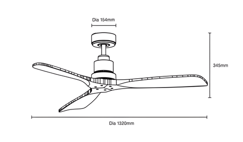 This ceiling fan is engineered as a high-efficiency air circulation solution for contemporary residential interiors and covered outdoor environments. Driven by a precision-balanced 40W DC motor, the unit operates at rotational speeds of up to 200 RPM while maintaining low power consumption and stable mechanical output. The three solid timber blades span 1320mm and are optimised with an 8° blade pitch to generate smooth, consistent airflow across all six electronically regulated speed settings.
