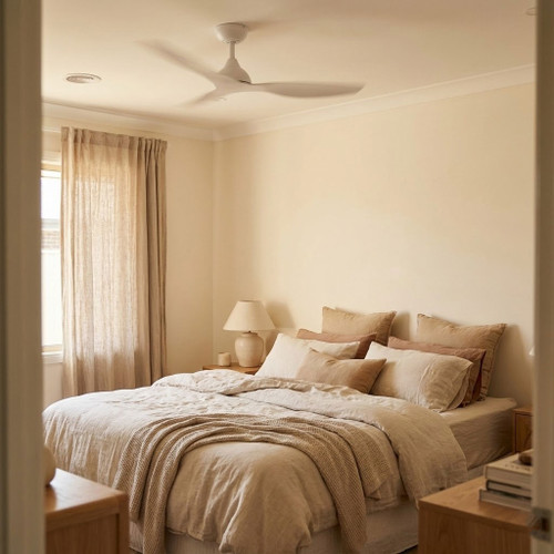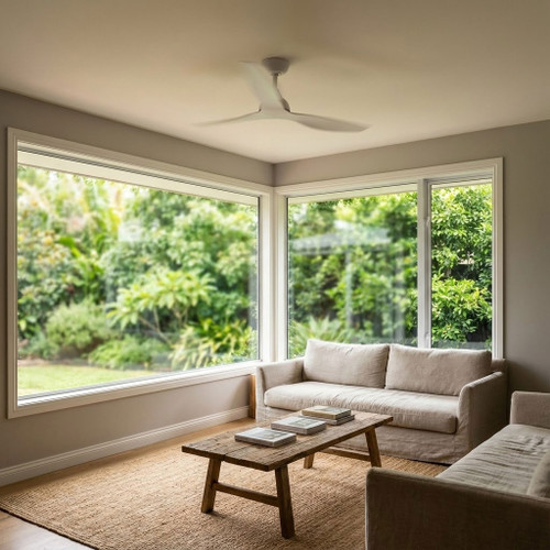 This ceiling fan combines aerodynamic precision with advanced DC motor technology to deliver efficient, quiet and highly controlled airflow performance. Constructed with ABS blades, steel body and canopy, and a PMMA lens cover, it is engineered for long-term reliability while maintaining a refined, slimline aesthetic suited to contemporary interiors. Presented in a matt white finish, its 1320mm (52 inch) blade span paired with a 10° blade pitch produces balanced air movement, making it suitable for residential living rooms, bedrooms, and covered outdoor areas that require dependable year-round ventilation.