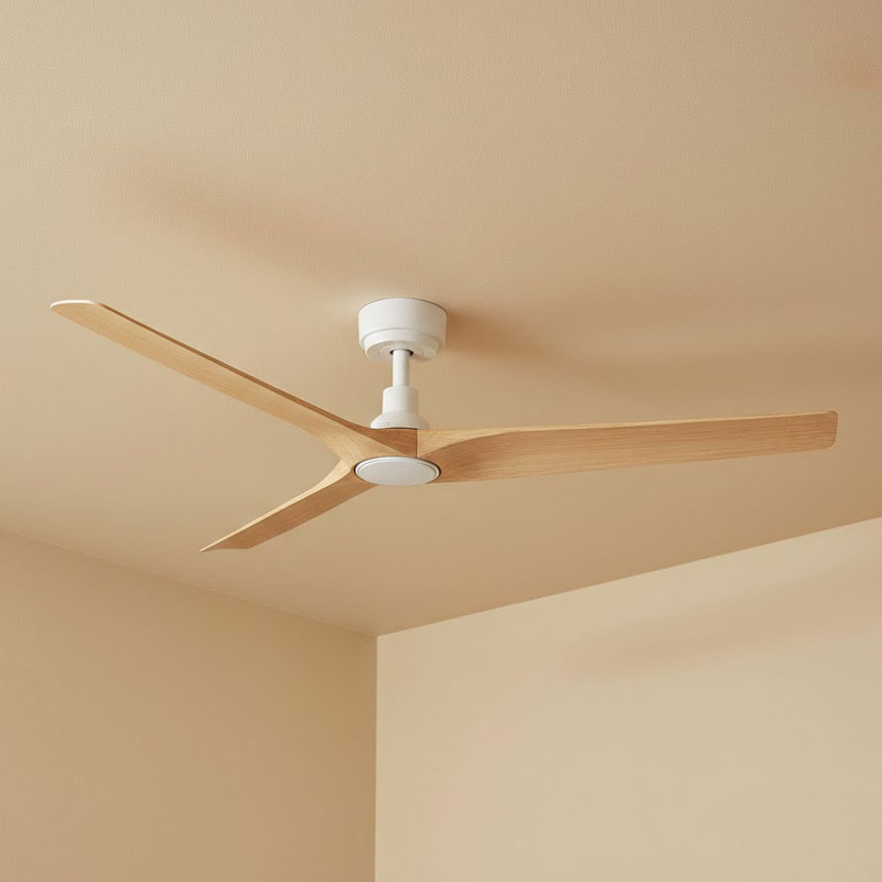 This ceiling fan integrates advanced aerodynamic engineering with a refined architectural form to deliver stable, energy-efficient airflow across a wide range of residential environments. Finished in matt white with contrasting oak blades, it features three precisely balanced ABS aerofoil blades designed to optimise laminar airflow while minimising mechanical noise. The 1320mm span and 10° blade pitch work cohesively to maintain consistent air displacement, making the fan suitable for both indoor and covered outdoor installations where controlled ventilation and visual uniformity are required.