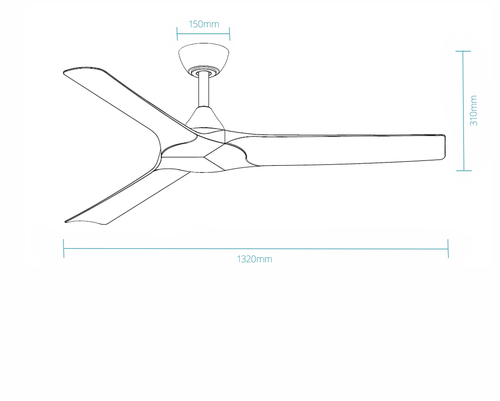 Advanced control is provided via WiFi connectivity and a multi-function 433MHz remote, allowing full management of fan speed, airflow reversal, breeze and sleep modes, and timer control. The slimline steel canopy with 10° hangsure design and a 150mm ceiling canopy diameter supports secure surface mounting at an installed height of 310mm, delivering both mechanical stability and a clean, low-profile ceiling presentation.