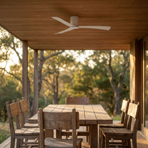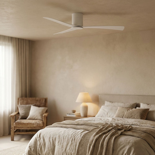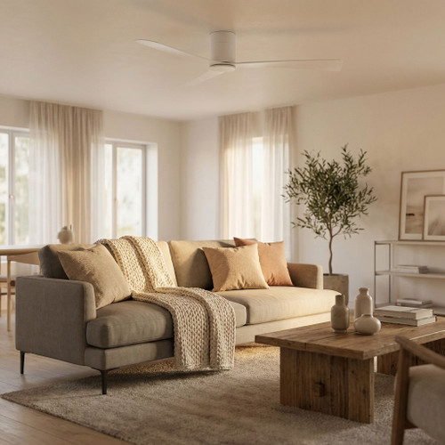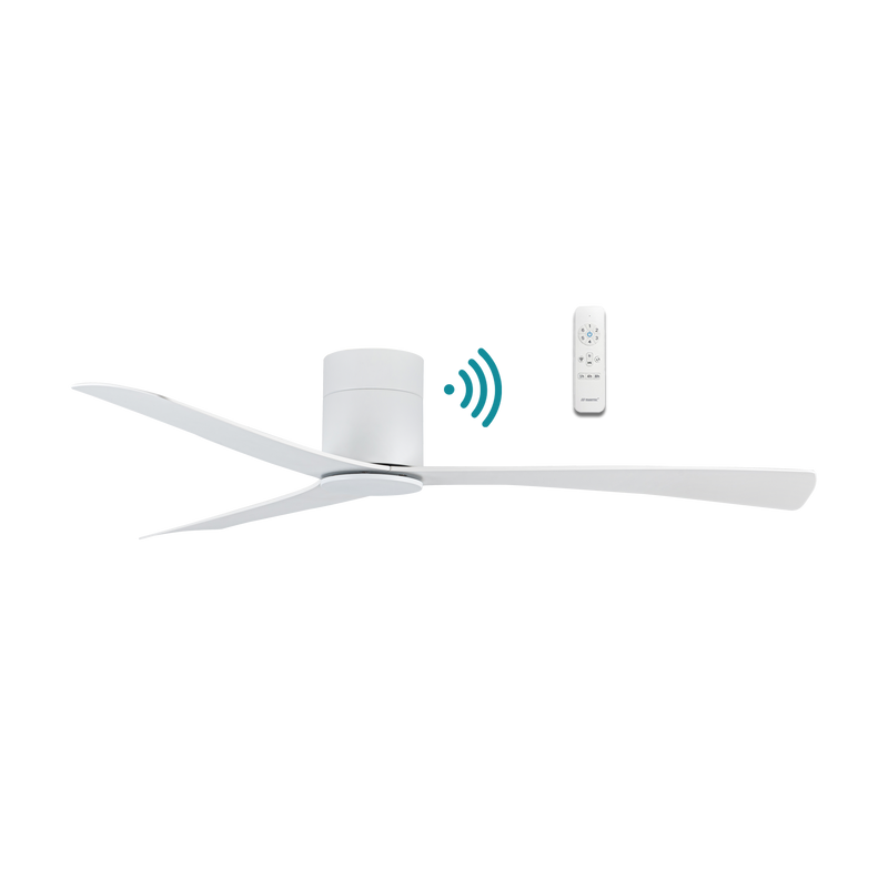The aerodynamic configuration features three precision-moulded matt white ABS blades set at a 12° pitch to optimise air displacement and volumetric flow uniformity. Spanning 1320mm (52 inches), the blade sweep ensures broad area coverage, making the fan ideal for medium to large rooms. The matt white steel body and canopy provide structural rigidity and long-term corrosion resistance, while the flat surface level hangsure canopy enables secure installation at a total installed height of just 210mm, reinforcing its low profile design.