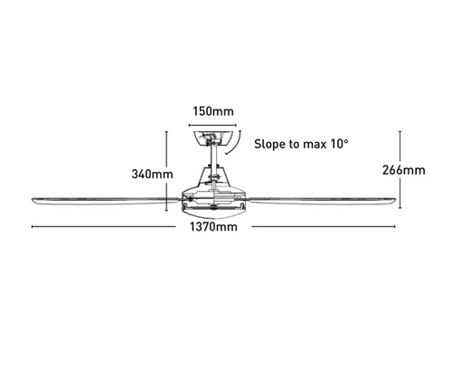 The brushless DC motor architecture is optimised for improved energy efficiency and reduced mechanical losses compared with conventional AC motor systems, delivering smooth speed modulation and stable airflow performance. The compact ceiling-mounted profile, with an installed height of 340mm, allows installation in rooms with standard ceiling clearances, while the reversible motor function enables airflow direction to be adjusted for both summer cooling and winter heat redistribution.
