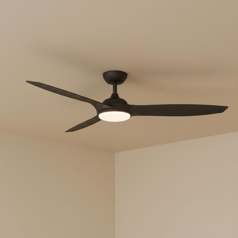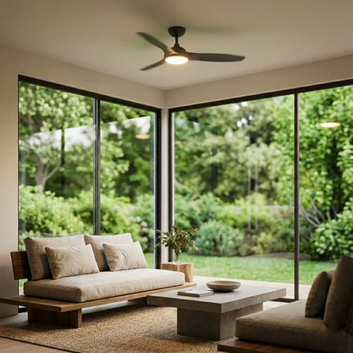 This ceiling fan integrates aerodynamic engineering with advanced lighting control to deliver high-performance airflow and illumination for contemporary residential environments. Crafted with a steel body and canopy paired with ABS blades in a matt black finish, it achieves a harmonious balance between structural durability and refined visual minimalism. Its 1420mm blade span and sculpted blade geometry are precisely modelled to optimise air displacement while maintaining stable, low-noise rotation across all operating speeds.