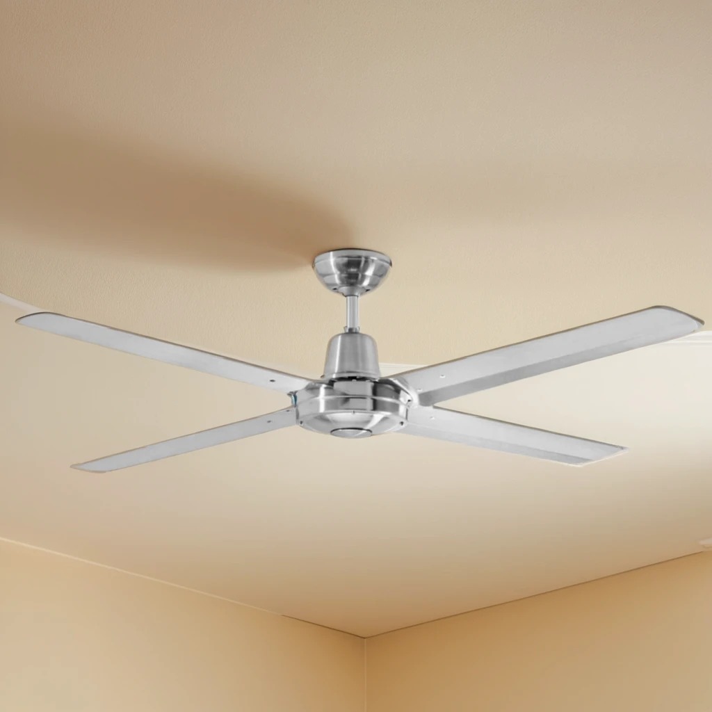 This ceiling fan is engineered for durability and optimal airflow performance in both residential and commercial applications. Crafted from marine grade 316 stainless steel, it is specifically designed to withstand harsh coastal environments, covered outdoor areas, and tropical climates. Its solid construction includes a robust metal body and canopy, paired with four precision-balanced stainless steel blades, ensuring consistent operation and resistance to corrosion over time.