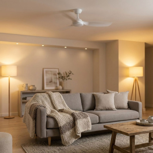 This ceiling fan combines aerodynamic precision with energy-efficient performance, engineered to deliver stable and refined airflow across medium to large interior spaces. Constructed with a steel body and canopy paired with ABS blades in a matt white finish, it provides a visually light yet structurally robust profile. Its 1420mm blade span is aerodynamically modelled to maximise airflow while maintaining low operational noise, making it suitable for bedrooms, living areas, and covered outdoor environments requiring quiet, consistent circulation.