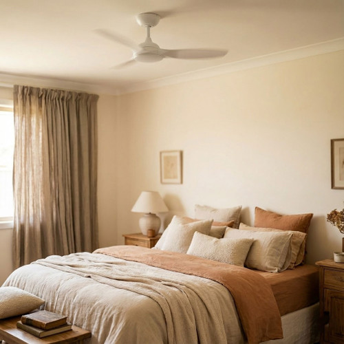 Designed at a compact 264mm overall height with a 150mm ceiling canopy, the fan offers a discreet installation profile suitable for both standard and lower ceiling heights. It is rated for indoor and covered outdoor applications when installed by a licensed electrician in accordance with electrical safety requirements. Supplied with a 6-year warranty, including 3-year in-home service and an additional 3-year motor warranty, this ceiling fan delivers an efficient, durable, and technologically advanced climate-control solution for contemporary residential settings.