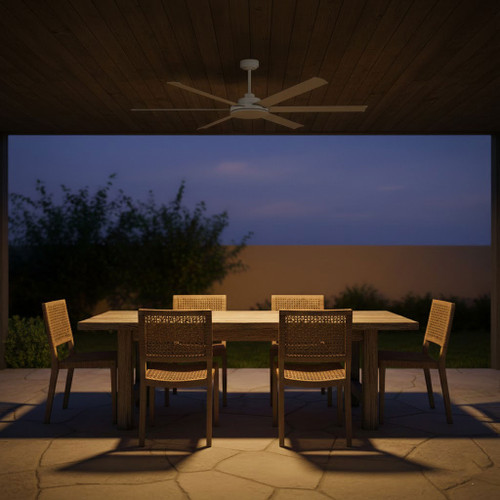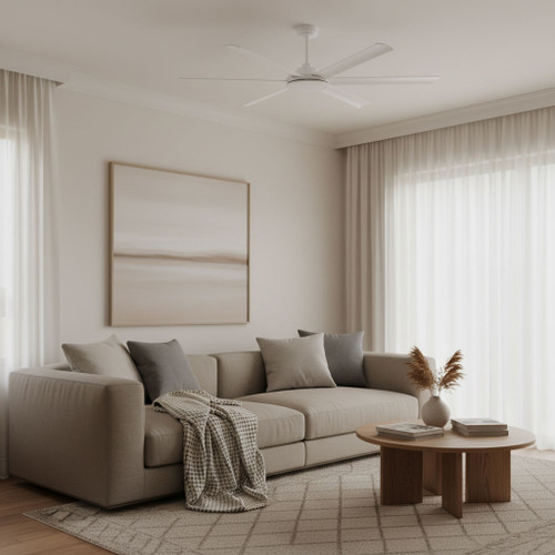 This ceiling fan combines architectural precision with advanced energy-efficient performance, engineered to deliver optimal airflow for both indoor and covered outdoor environments. Finished in matt white, it features six aerodynamically contoured aluminium blades powered by a high-efficiency 55W DC motor, ensuring strong yet quiet operation. The steel body and canopy provide structural rigidity, while the integrated PMMA lens cover enhances visual uniformity and protection. Its balanced 1830mm (72 inch) blade span and 10° pitch are precisely calibrated to move large volumes of air efficiently, achieving superior cooling performance across large interior spaces and expansive open-plan environments.