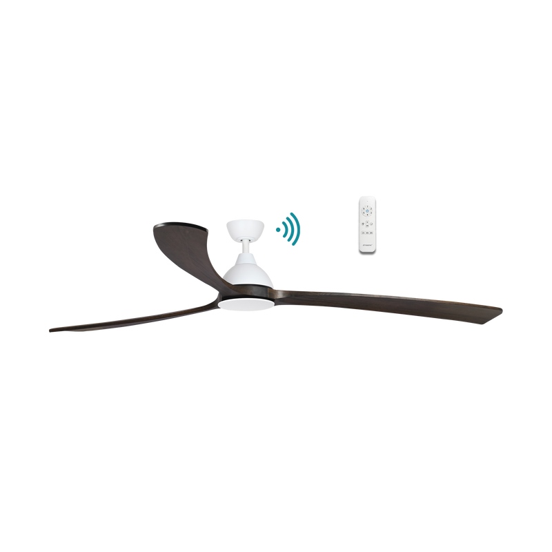 This ceiling fan combines contemporary engineering with refined design to deliver efficient and whisper-quiet airflow performance. Constructed with a durable steel body and canopy paired with solid timber blades in a walnut timber finish, it achieves both visual elegance and mechanical reliability. The matt white motor housing pairs seamlessly with the rich walnut blades, creating a clean and modern aesthetic suitable for contemporary, Scandinavian, and designer-inspired interiors. Its 2175mm blade span ensures wide and powerful air coverage, making it ideal for large living areas, open-plan rooms, and covered outdoor spaces that demand smooth, consistent airflow.