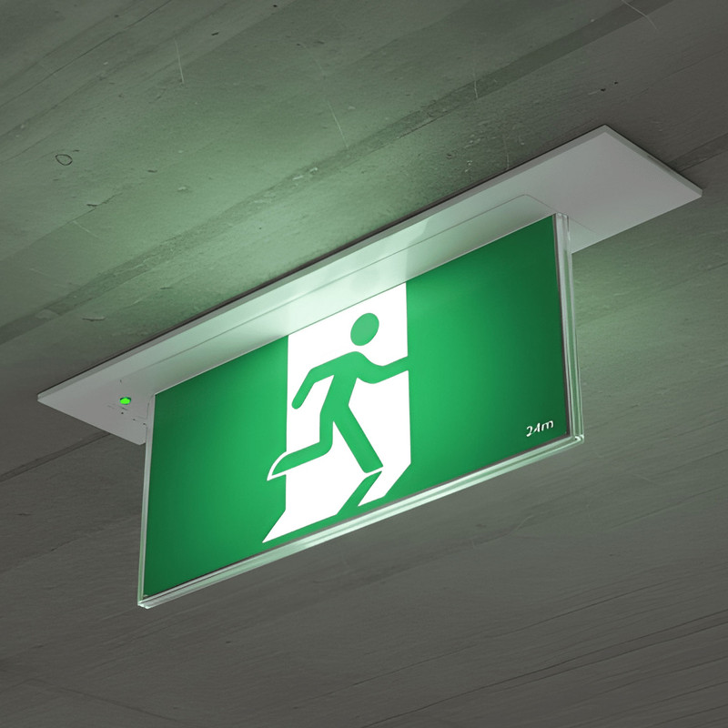 2W Emergency Exit Sign Industrial Strength LED 24m Recessed 2 Hours Green Blade