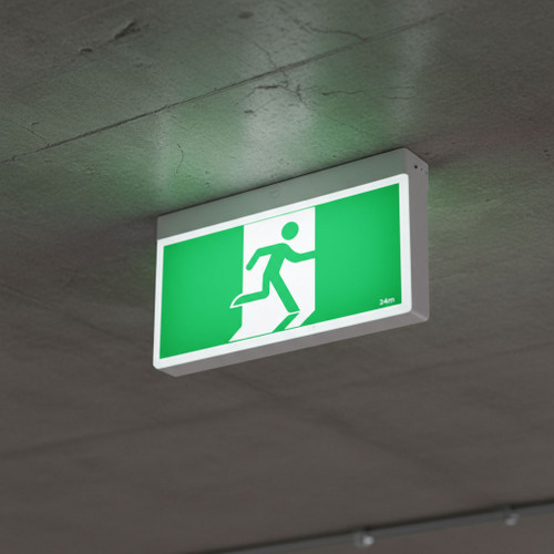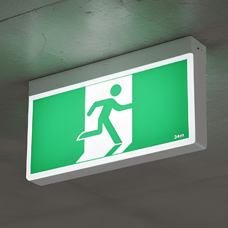 Constructed from flame-retardant polycarbonate, this emergency exit light is built to withstand the rigors of industrial environments while maintaining a sleek profile. Its high-efficiency LED strip light source guarantees an exceptional lifespan of 100,000 hours, and the green and white design ensures optimal visibility.