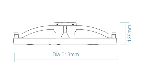 DIMENSIONS: 613mm (diameter) x 128mm (height)
