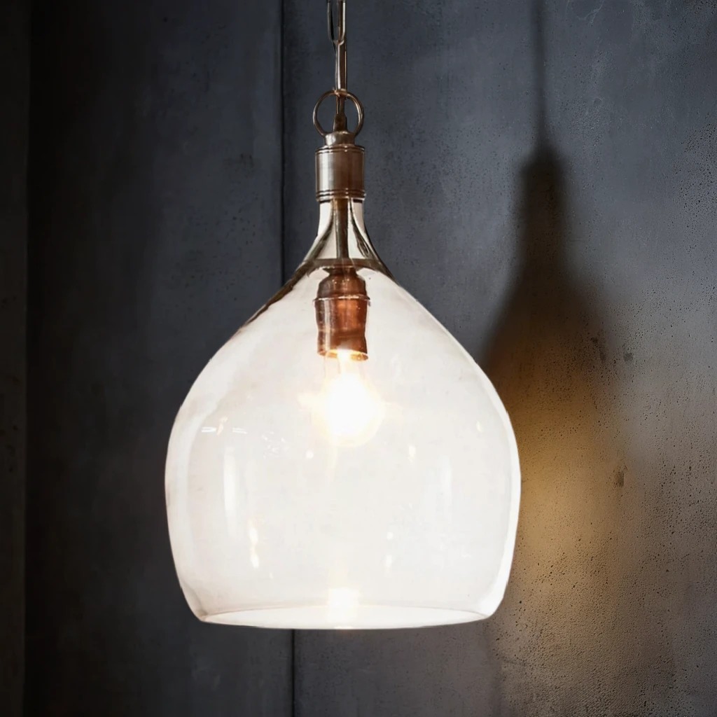 Elegant bell glass pendant light with chain suspension. Great addition to your home lighting fixture.
