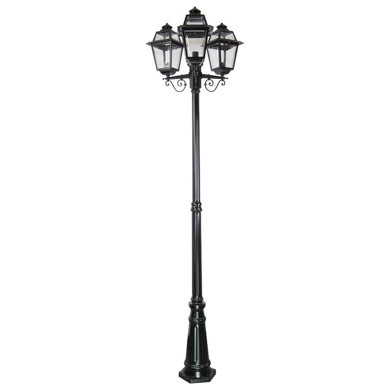 Avignon Black 3 light die-cast aluminium and moulded acrylic lens triple head 2.4m post light. Made in Italy, assembled and powder coated in Australia. Also available in Beige, Burgundy, Green & White. Requires 3 x B22 globes.