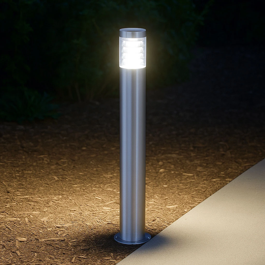 This bollard light exemplifies durability and elegance, providing a robust lighting solution for outdoor environments. Constructed from high-quality 304 stainless steel, the luminaire exhibits superior corrosion resistance, ensuring longevity even in harsh weather conditions. The clear polycarbonate diffuser is engineered to deliver uniform light distribution while maintaining impact resistance and structural integrity. With an IP44 rating, this bollard light is weather-resistant, offering reliable performance in residential and commercial applications where ambient illumination is required.
