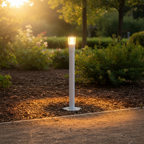 This commercial grade bollard light offers a robust and architecturally refined outdoor lighting solution engineered for durability and efficiency. Constructed from high-quality die-cast aluminium with a powder-coated white finish, the luminaire exhibits strong resistance to corrosion and environmental degradation, making it ideal for prolonged external use. Its clean cylindrical geometry and conical head provide a sleek, modern silhouette that complements both commercial and high-end residential landscapes. The IP54 rating ensures protection against dust ingress and water splashes, offering weather-resistant reliability across diverse outdoor environments.