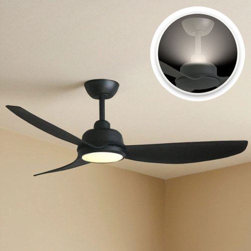 This ceiling fan offers a high-performance solution for contemporary cooling and lighting needs, integrating elegant design with functional precision. This black ceiling fan features three aerodynamic polymer blades engineered for quiet operation and effective airflow across spaces of varying sizes. The 1220mm blade span ensures widespread air distribution, while the durable construction provides long-term reliability in both indoor and undercover outdoor environments. Its sculpted blade profile minimises noise and turbulence, making it ideal for settings where quiet operation is essential.