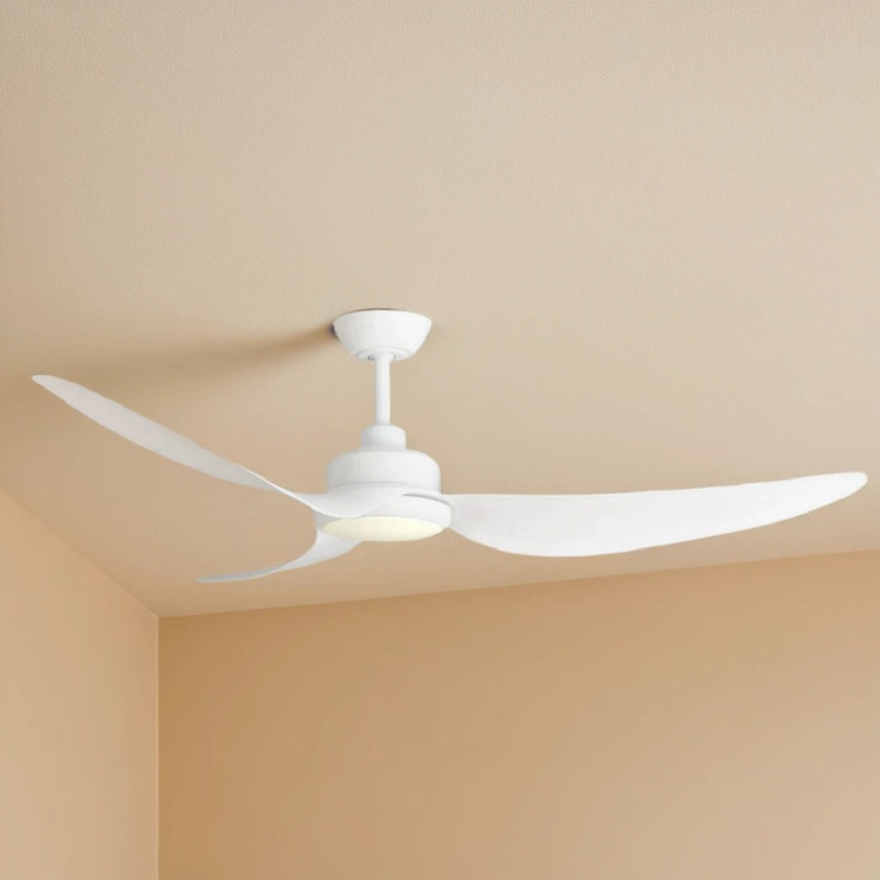 This ceiling fan delivers a refined combination of aerodynamic performance and minimalist design, ideal for contemporary interiors or covered outdoor spaces. Finished in a clean and uniform matt white, the fan includes a seamlessly integrated LED light, offering a sleek monochromatic look suited to modern interiors. The three contoured polymer blades span 1420mm and are engineered for optimal air movement and quiet operation, blending function with understated elegance.