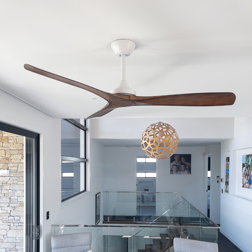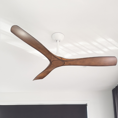 This ceiling fan is a high-performance air circulation solution designed to integrate contemporary design with energy-efficient functionality. Featuring a matte white motor housing and sculpted koa-finished blades, it delivers both visual contrast and operational excellence. The aerodynamic blade profile, fabricated from UV-stabilised polymer, ensures long-term durability and resistance to environmental degradation, making it ideal for both indoor and sheltered outdoor installations. The fan’s minimalist form factor complements modern interiors while providing optimal airflow across a wide 1520mm span.