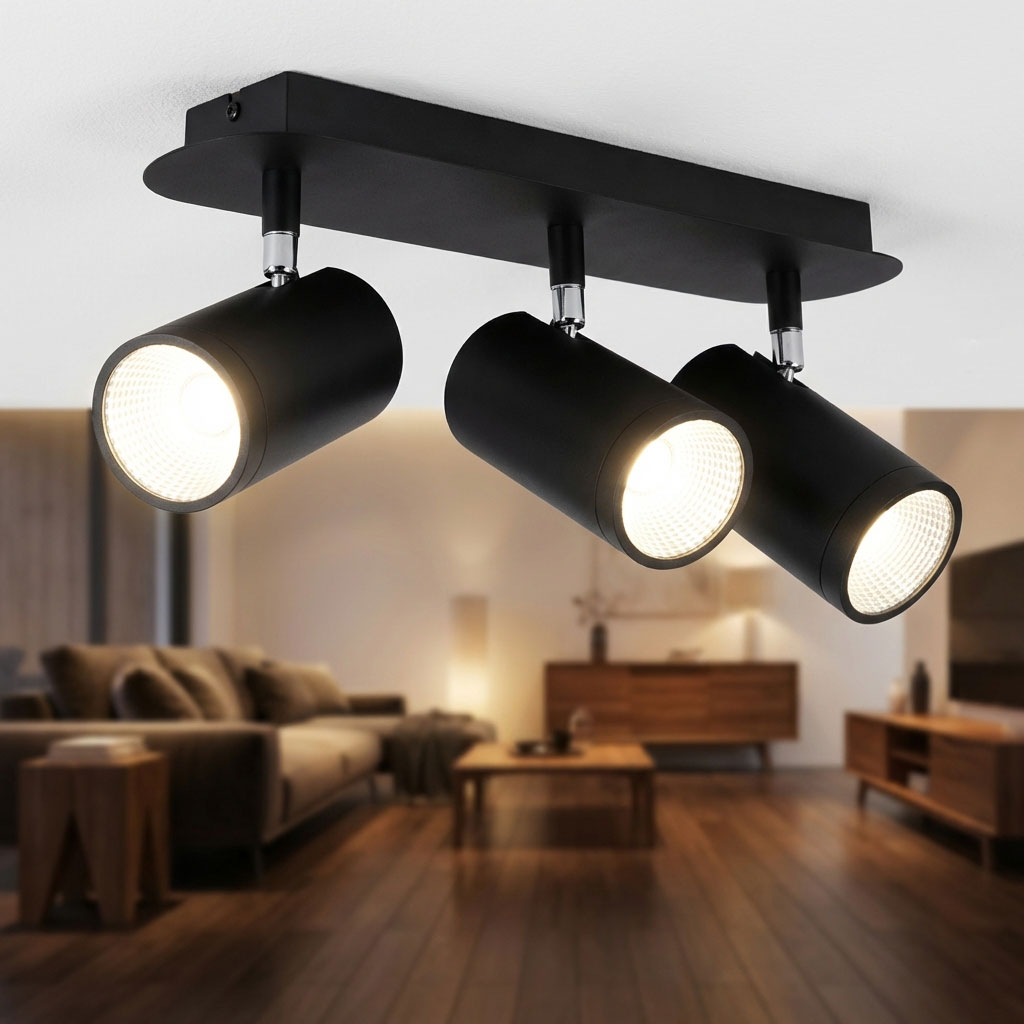 This modern three-light ceiling lights features a sleek black finish, adjustable knob and 45 degree beam angle.