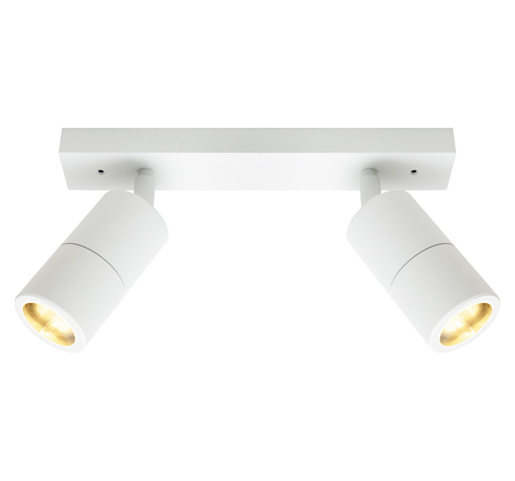 This ceiling spotlight provides a refined and efficient lighting solution for interiors that demand precise directional illumination. Finished in a clean white coating, it presents a minimalist profile that blends seamlessly with contemporary ceilings and architectural surfaces. The dual-head configuration allows two discrete light sources to be mounted on a single 360mm rail, offering balanced coverage while maintaining a compact footprint.