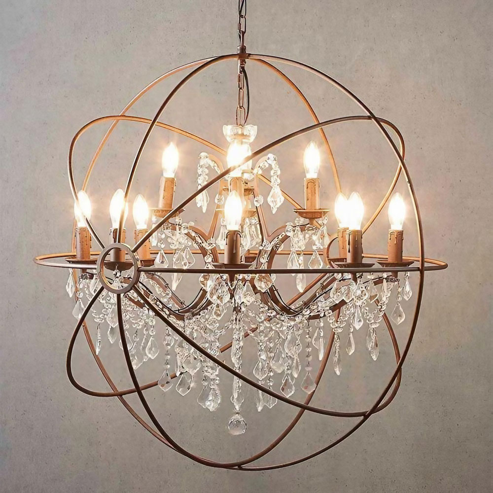 This chandelier is a striking statement piece that combines refined craftsmanship with architectural presence. Constructed from durable iron and metal in a rust finish, its structural framework forms an elegant open sphere that encases a central array of twelve E14 lamp holders. Each holder is designed to accommodate a globe of up to 40W, allowing the fixture to deliver both functional illumination and a warm, inviting glow. The suspension length is adjustable up to 1500mm, ensuring versatility in positioning for various ceiling heights and spatial layouts.
