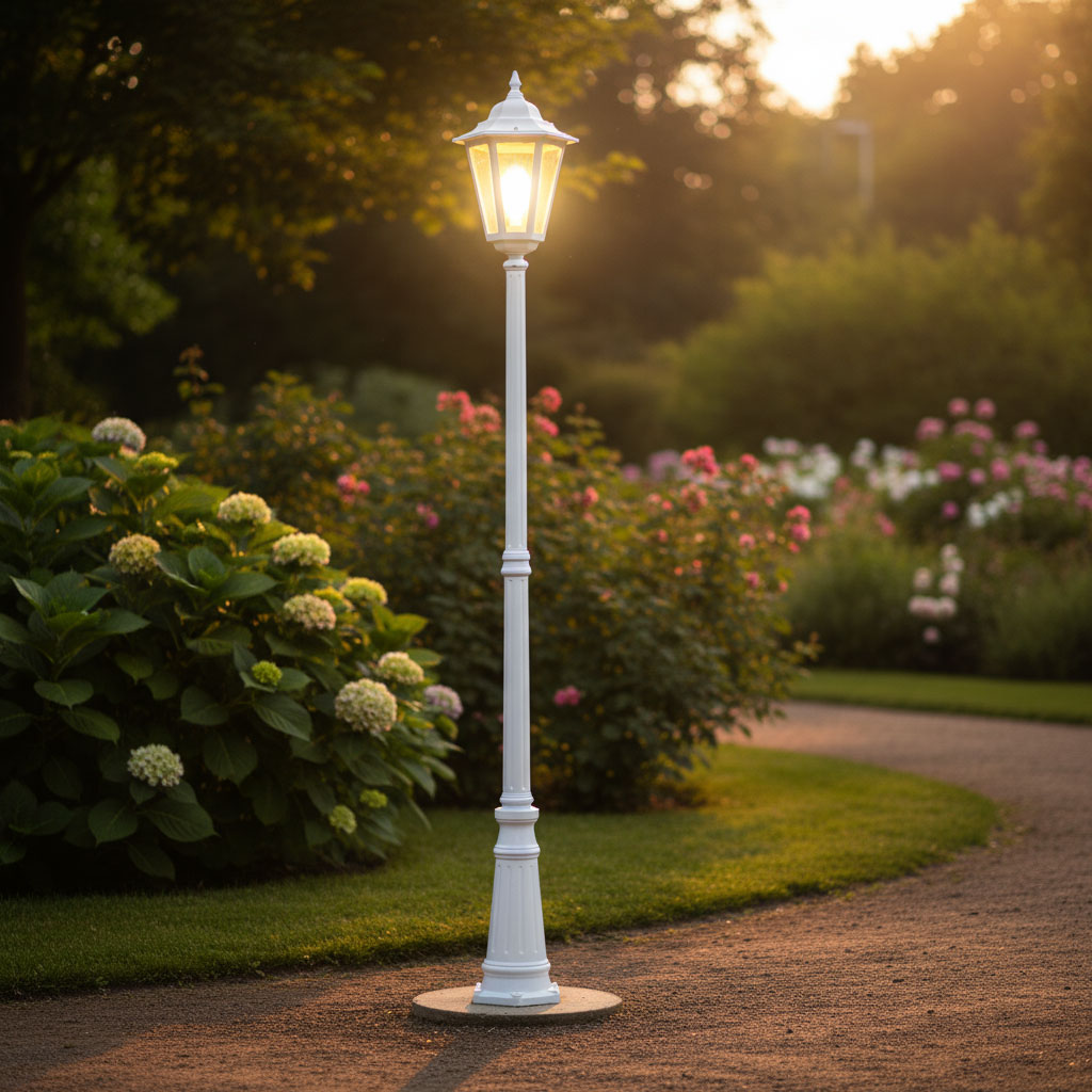 Large white 2.45m single head post light, die-cast aluminium body and moulded acrylic lens. Made in Italy, assembled and powder coated in Australia.