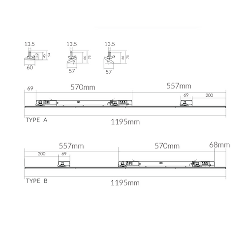 DIMENSIONS: 1195mm (length) x 60mm (width) x 54mm (height)