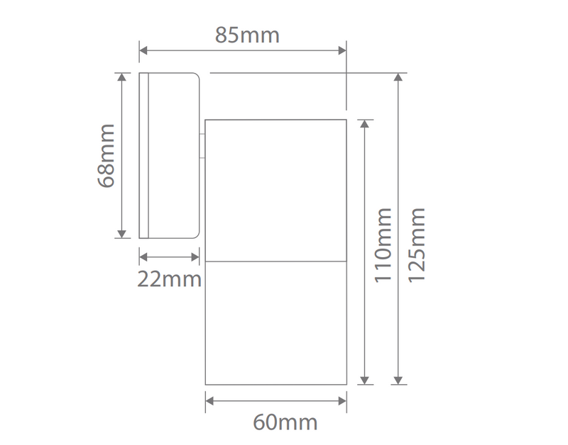 DIMENSIONS: 125mm (height) x 68mm (width) x 85mm (projection)