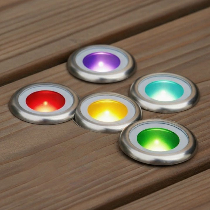 5 Pack DIY LED Deck Light kit RGB Colour Change, 5x0.6W, complete with plug and play cable and 12V DC LED Driver with flex and plug, and colour controller with RF remote control. Multiple pre-set colour scenes as well as the option of choosing desired colour. 316 Stainless steel body with opal glass diffuser. Upgradable to maximum 10 lights by adding optional Single deck light. Complete with 1M of cable per head.