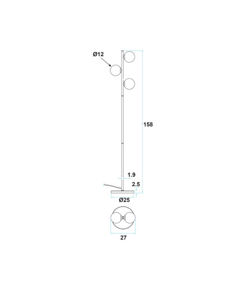With an overall height of 1580mm and a stable 250mm diameter base, the lamp is designed for excellent structural balance and safe placement beside sofas, armchairs, or open-plan seating areas. The vertical alignment of the three globes across a 270mm width allows light to be projected at multiple heights, improving spatial brightness while maintaining a clean and unobtrusive footprint.
