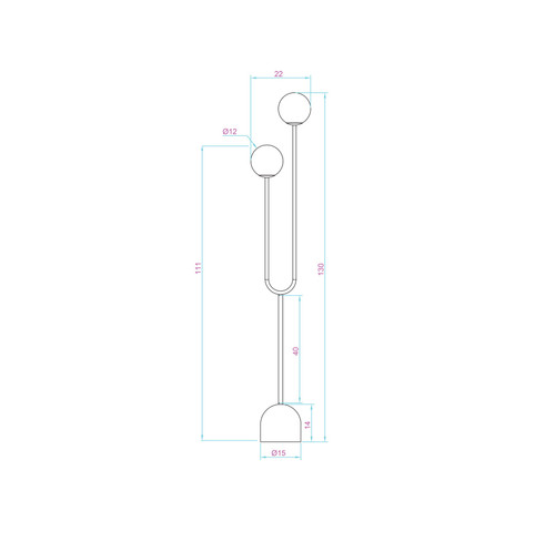 With an overall height of 1300mm and a compact base diameter of 150mm, the lamp offers excellent mechanical stability while maintaining a slim footprint for flexible placement beside sofas, armchairs, or side tables. The vertical arrangement of the two light sources across a total width of 220mm enables light to be distributed at multiple levels, improving spatial brightness without overwhelming the surrounding décor.