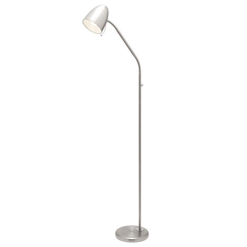 This floor lamp is designed to provide focused and adaptable task lighting for interior residential environments where directional illumination is required. Finished in brushed chrome, the fitting integrates a single E27 lamp holder rated for up to 28W, allowing compatibility with a wide range of LED or incandescent globes to achieve the desired luminous output and beam distribution. The metal construction provides a stable structural framework, supporting consistent positioning of the light source while maintaining mechanical integrity during routine adjustment and operation.