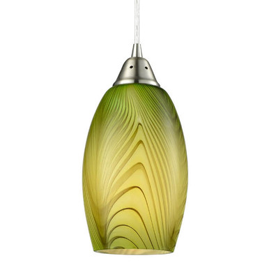 Modern Pendant Light, Green - Handcrafted Glass, Variable Cord