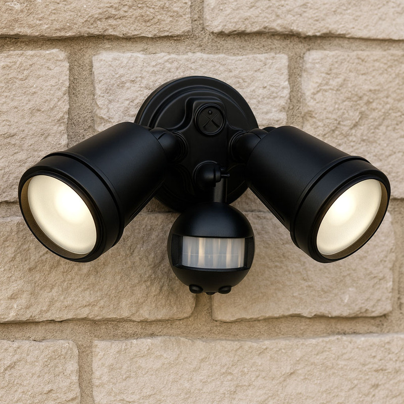 The design features two powerful LED COB (Chip-on-Board) globes, each emitting 750 lumens of cool white light at a calibrated 4200 Kelvin. This colour temperature offers a precise balance between visibility and visual comfort, suitable for both residential and commercial security applications. With a tightly controlled 40° beam angle, the luminaires provide focused, peer-grade illumination that enhances perimeter visibility without excessive light spill. The fixture includes integrated rotational pivot points, enabling precise directional adjustment to target specific zones, pathways, or entry points. Operating at a total of 22 watts (2 x 11W) on a standard 240V supply, this floodlight is not only energy-efficient but also maintains a very low thermal output and zero ultraviolet radiation, reducing energy costs and material degradation over time.