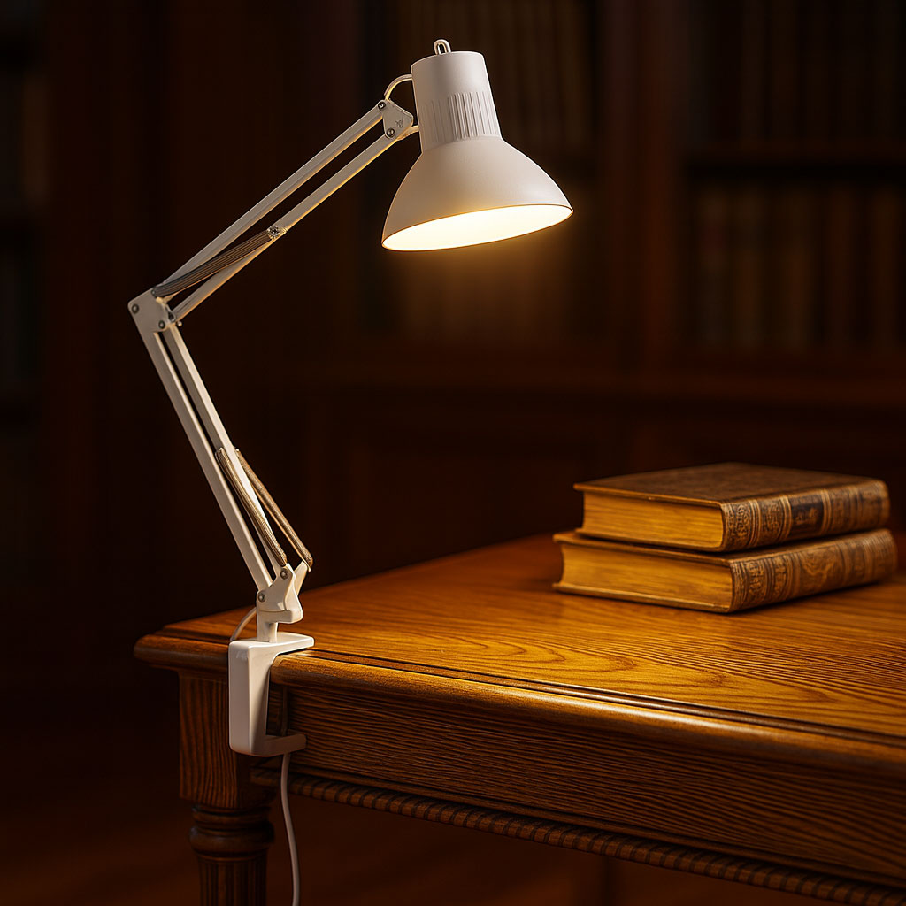 This clamp lamp offers a refined solution for task lighting, engineered for both form and function. The Iconic Design Large White E27 Clamp Lamp boasts a sleek, minimalistic aesthetic with a durable powder-coated white finish, merging seamlessly into contemporary workspaces or professional studios. Its robust mechanical structure allows for confident clamping onto surfaces up to 58mm in thickness via the integrated G clamp, ensuring secure placement on a wide range of desktops, drafting tables, or bench edges. The reach of 1065mm provides exceptional articulation and range, facilitating precision illumination across extensive work areas.