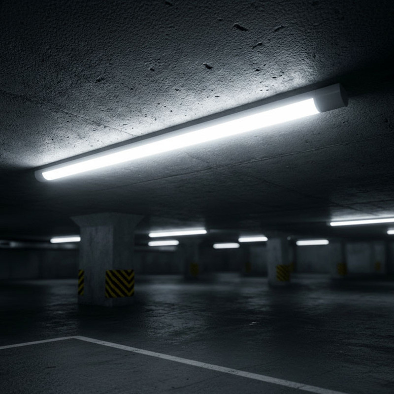 The batten integrates tri-CCT functionality, allowing selection between 3000K warm white, 4000K cool white, and 5000K daylight white to suit different task requirements and ambient preferences within commercial settings. A wide 110° beam angle promotes uniform light spread across the illuminated area, reducing shadowing and enhancing overall visual uniformity. The integrated LED light source with a colour rendering index greater than 80 ensures accurate colour perception for everyday visual tasks and operational activities.