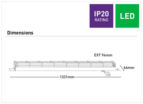 DIMENSIONS: 1331mm (length) x 66mm (width) x 94mm (height)