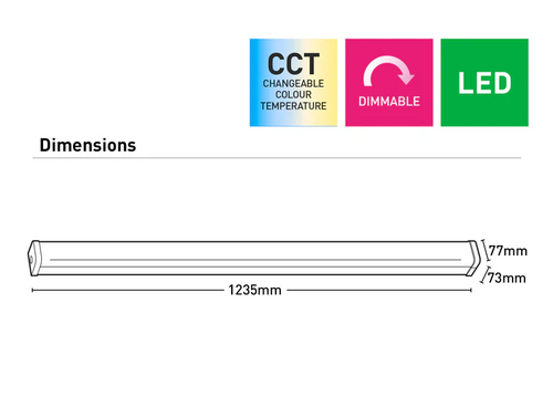 Integrated WiFi connectivity enables wireless dimming and control via supported smart lighting applications without the need for a dedicated hub, allowing convenient adjustment of light levels and colour temperature across connected devices. Designed for 220-240V A.C. 50Hz supply, the 1235mm surface-mounted batten provides a high-quality, dependable lighting solution for professional indoor environments, supported by a three-year warranty for long-term assurance.