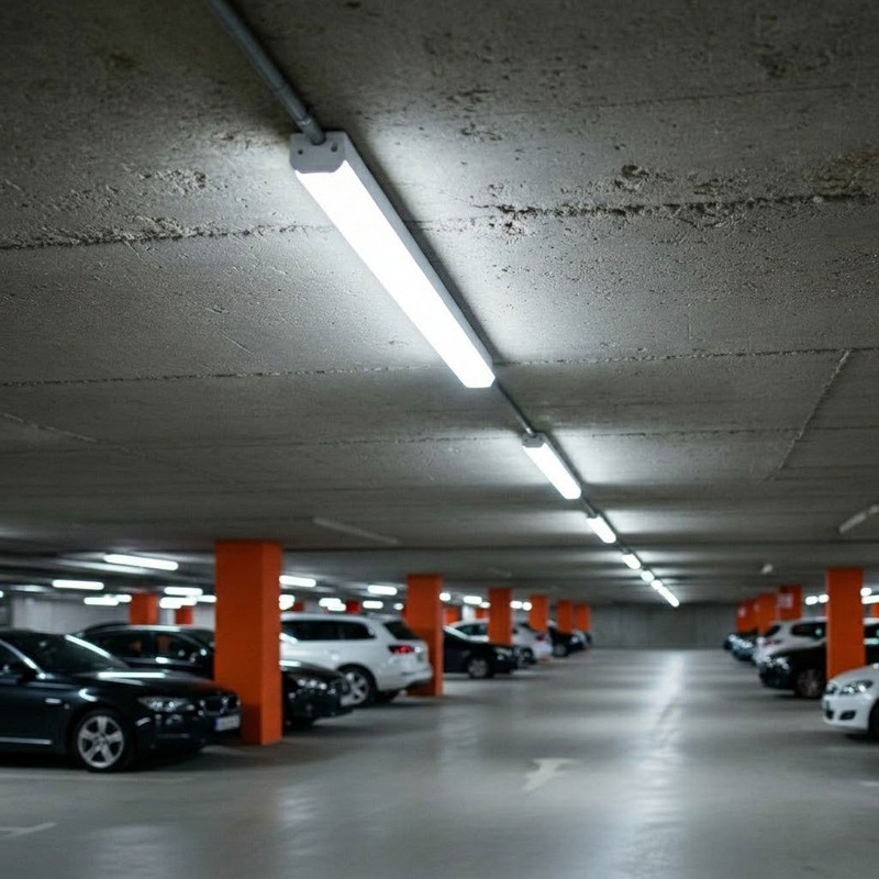 Operating at a nominal power of 40W, the batten delivers a luminous output of 4000 lumens, providing effective general illumination across large interior areas such as warehouses, retail premises, and industrial service zones. The optical system distributes light across a 110° beam angle to achieve uniform coverage, enhancing visual comfort and reducing uneven brightness across workspaces and circulation areas.