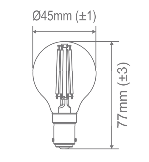 This LED globe is a compact lighting solution engineered for both energy efficiency and visual clarity, designed to meet the demands of modern interior lighting. As a G45-format lamp with a B15 bayonet cap, it features a precise 77mm height and 45mm diameter, making it ideal for applications requiring small-scale bulbs without sacrificing luminous performance. Its clear glass envelope and filament-style LED array replicate the appearance of traditional incandescent globes, combining classic aesthetics with advanced solid-state technology.