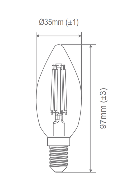 This LED filament globe is engineered to provide efficient, visually pleasing illumination in a compact and elegant form. Designed in a classic C35 candle shape, it features a frosted glass envelope that gently diffuses the light source, offering a softer visual profile while maintaining high efficiency. With a height of 97mm and a diameter of 35mm, the lamp is ideal for use in fixtures where space is limited yet reliable output is essential. The E14 base ensures compatibility with a wide range of decorative fittings, including chandeliers, wall sconces, and accent lamps.