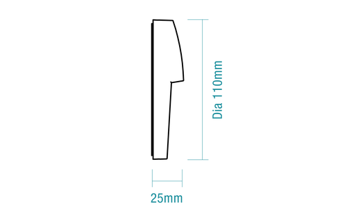DIMENSIONS: 110mm (diameter) x 25mm (projection)